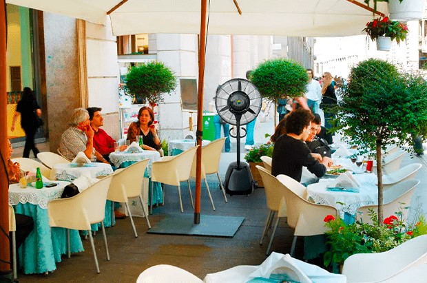 Παρέχει δροσιά σε εξωτερικούς & εσωτερικούς χώρους με σύστημα spray φρέσκου νερού.