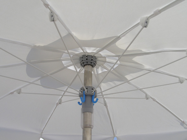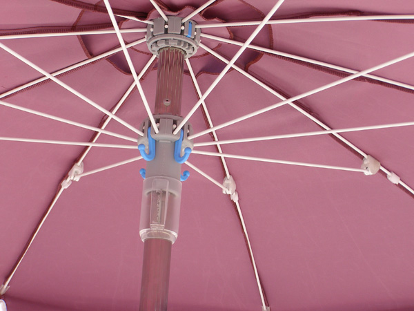 Περιλαμβάνεται σύστημα ασφαλούς κλεισίματος της ομπρέλας και 4 γάντζοι-κρεμάστρες στο δρομέα. Πατενταρισμένο σύστημα του δρομέα για γρήγορη αλλαγή των ακτίνων.